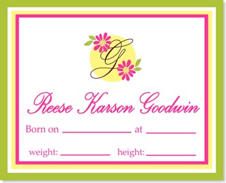 Girly Crib Cards
